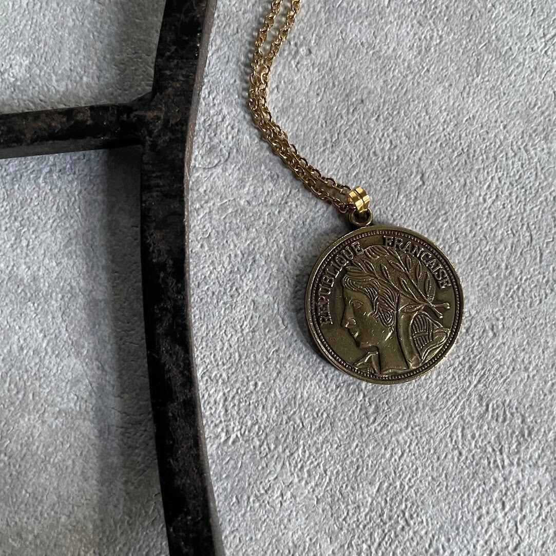 フランスのヴィンテージコインをモチーフに作られたコインパーツが雰囲気あるネックレスです。