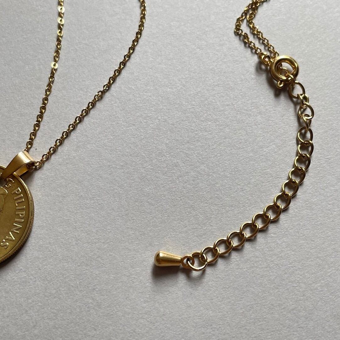 フィリピンで1983年に発行されたヴィンテージコインをリメイクして作られた、ハンドメイドのネックレスです。