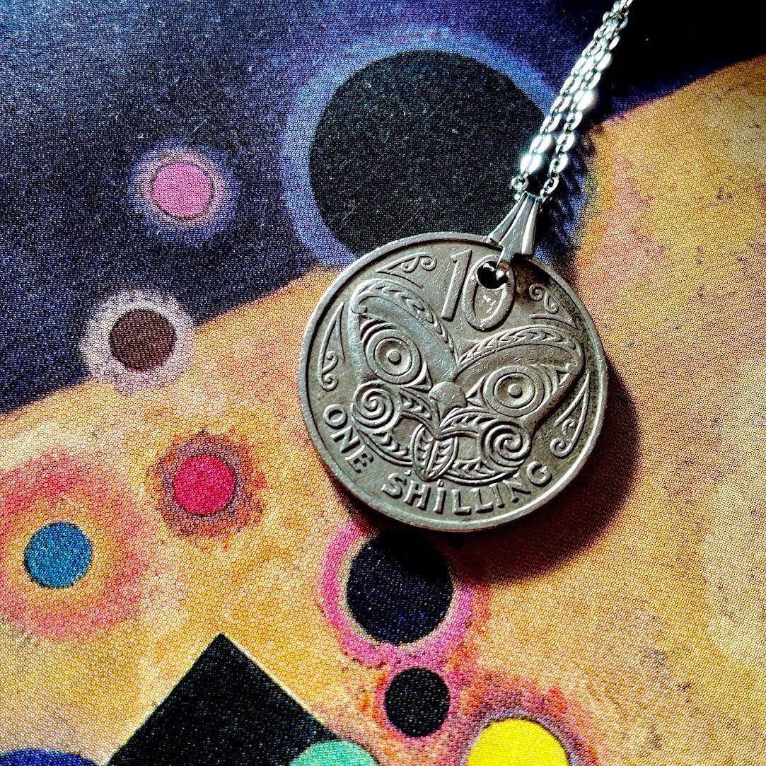 ニュージーランドで1967年に発行されたヴィンテージコインをリメイクして作られた、ハンドメイドのネックレスです。
