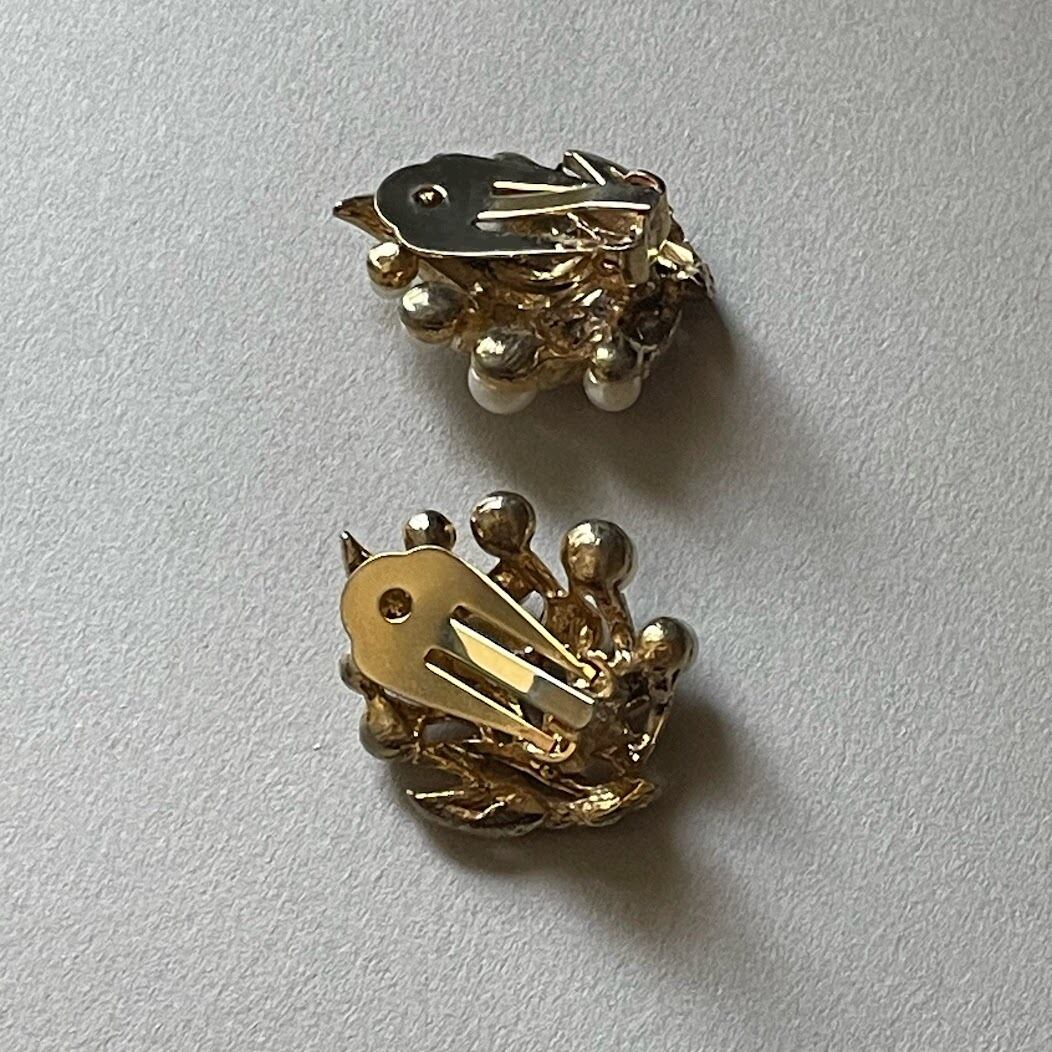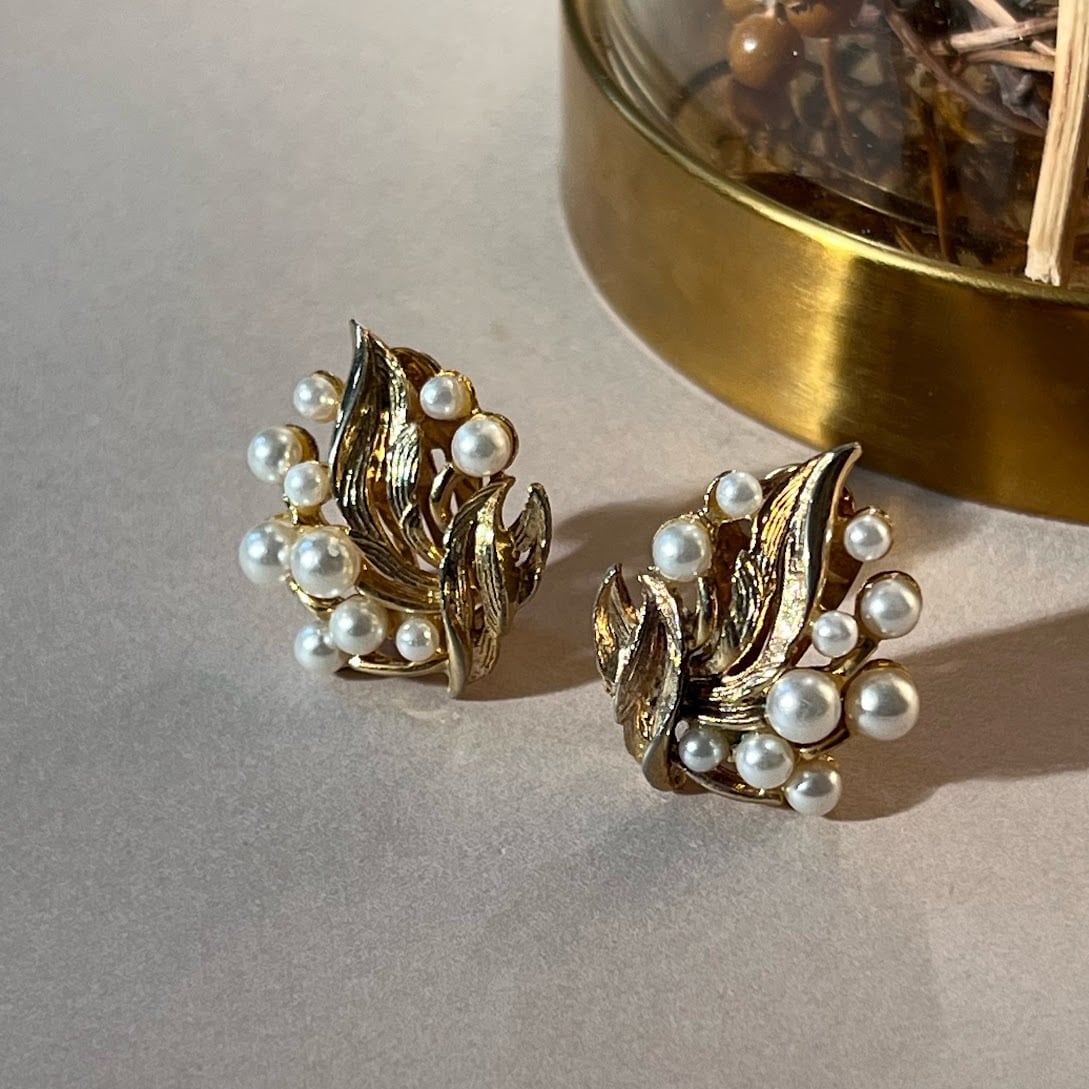 ボタニカルデザインにパールが実のようにつけられたイヤリングです。