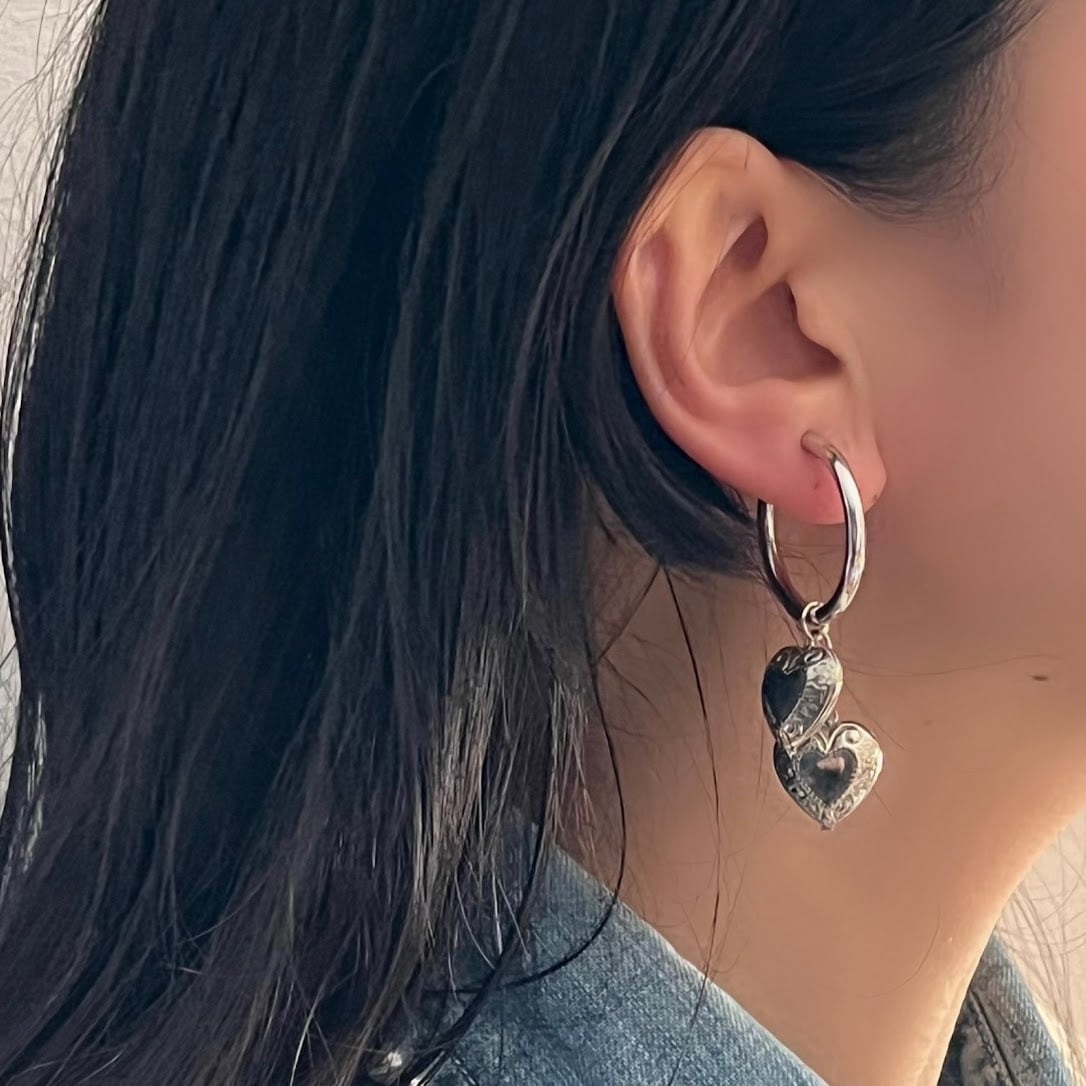 ハートの中に鈴が入っているので静かに鈴の音が聞こえてくるフープのイヤリングです。