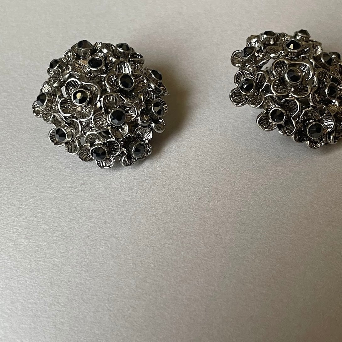 たくさんの小さな花の中で上品に光るブラックガラスがアンティークライクイヤリングです。