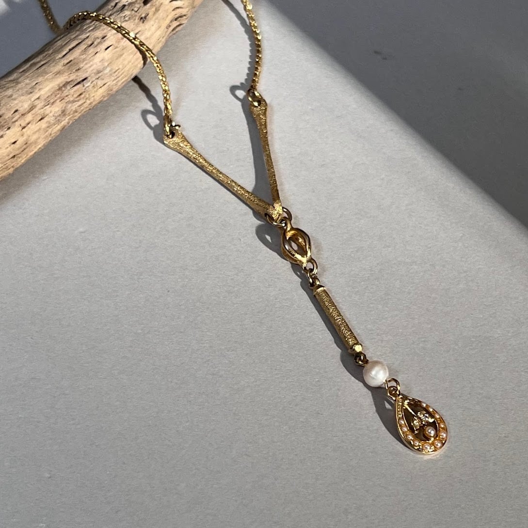 きれいなYラインと小ぶりなドロップパーツが魅力のネックレスです。