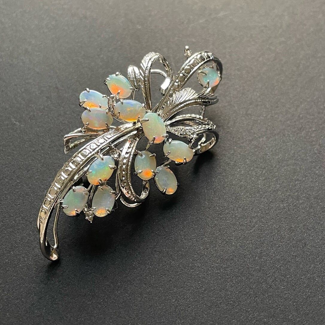 贅沢に使ったオパールが艶っぽく上品に輝くブローチです。