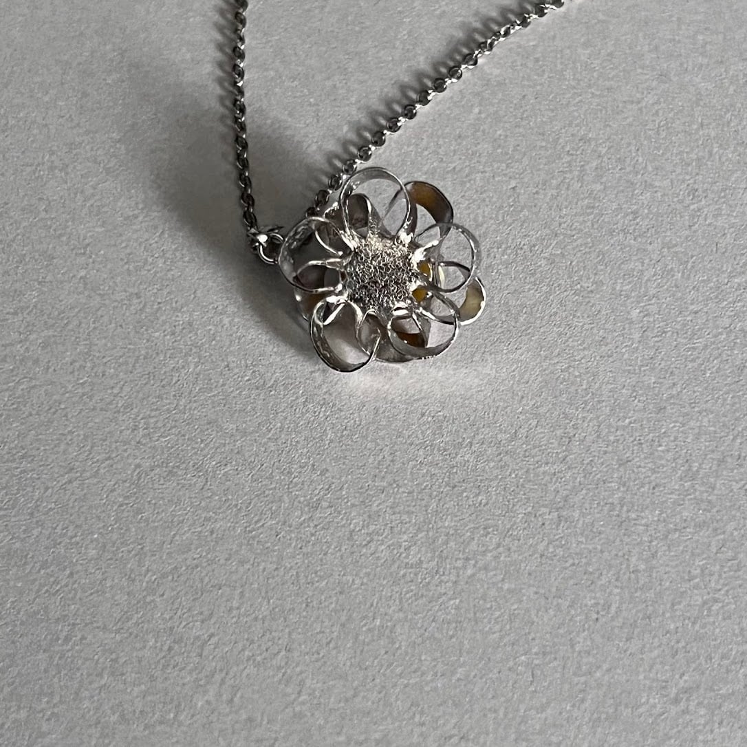 リボンのように立体になった花びらが魅力のヴィンテージネックレスです。