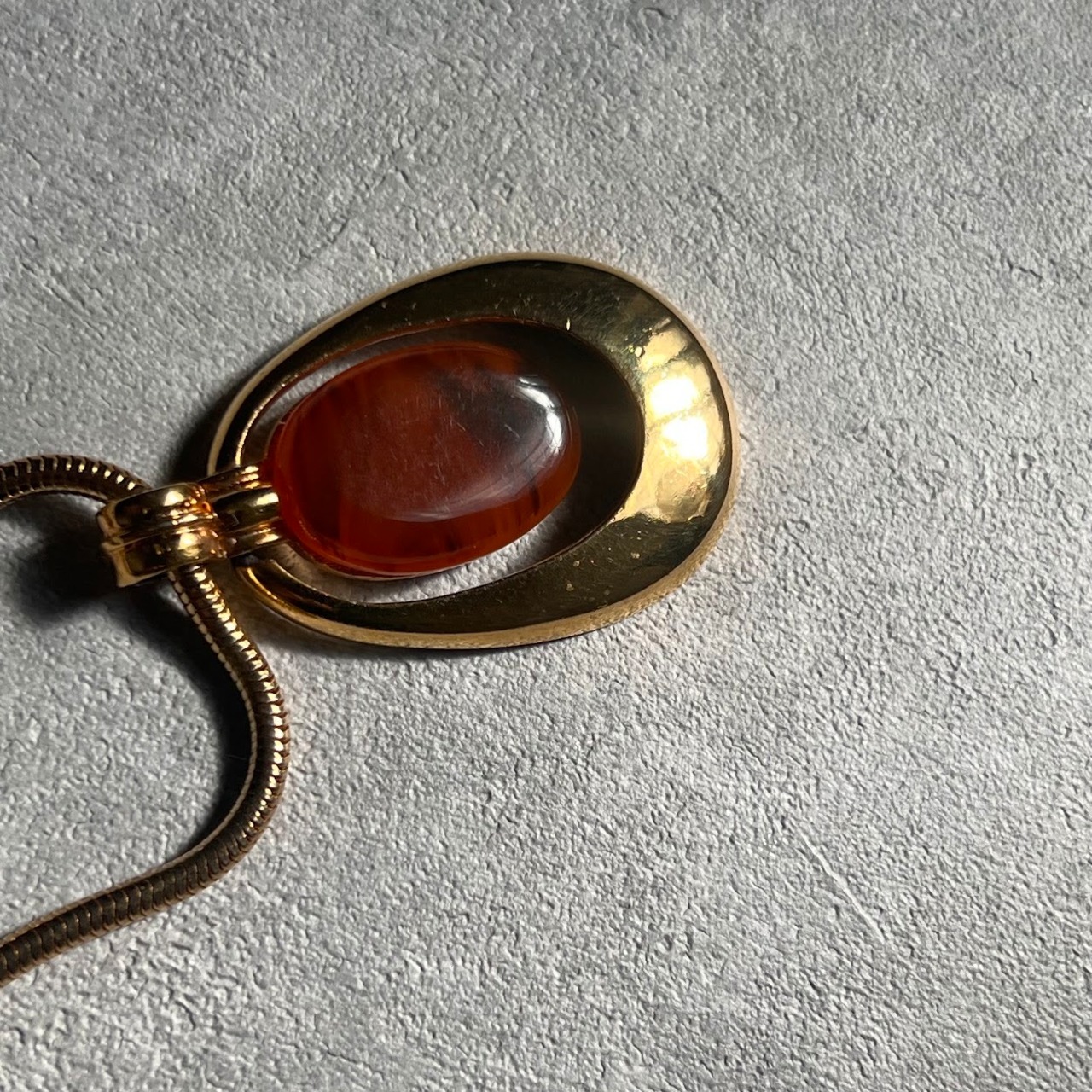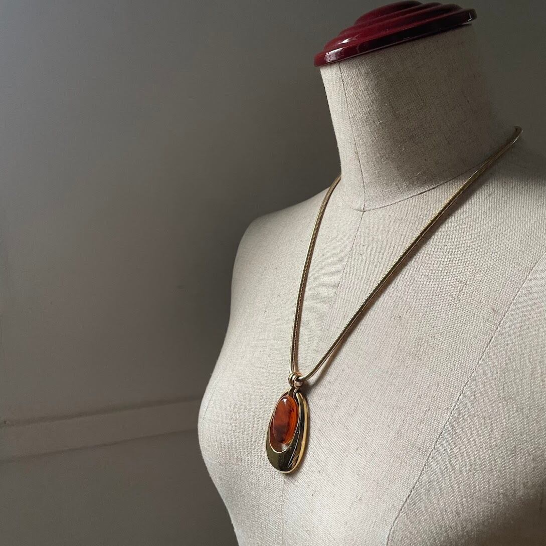 ゴールドベースにべっ甲カラーが雰囲気あるネックレスです。