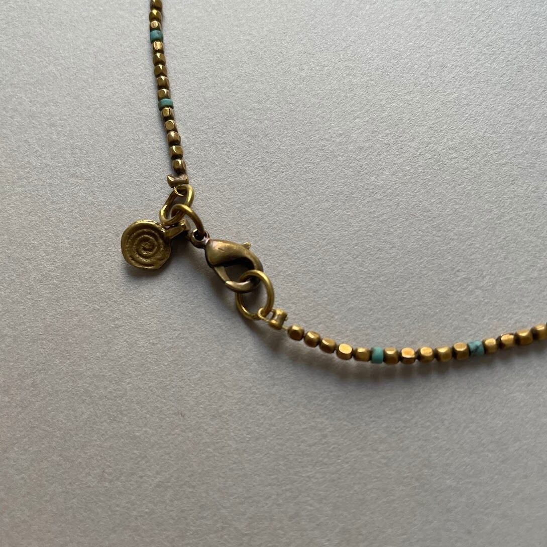 小さなメタルパーツを繋ぎ合わせたネイティブ感あるネックレスです。