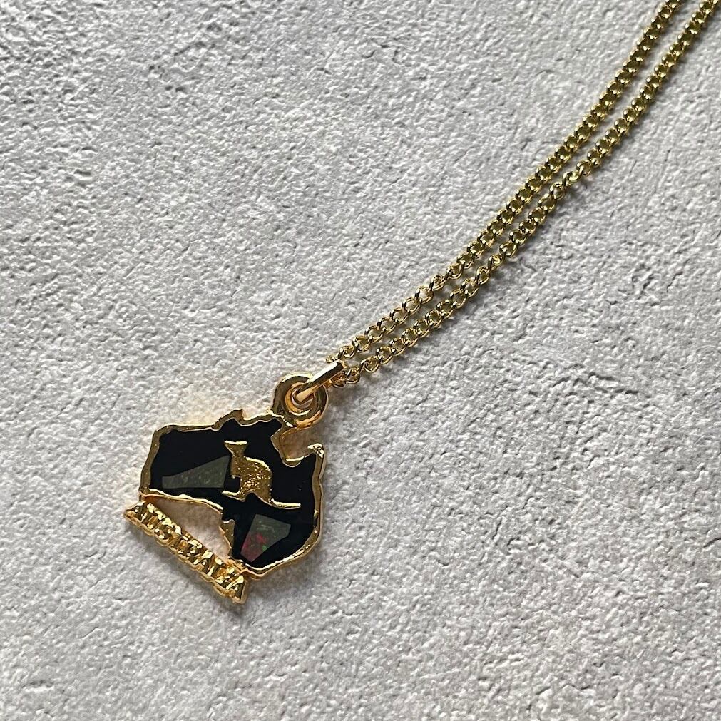 オーストラリアのシルエットにカンガルーとオパールがデザインされたネックレスです。