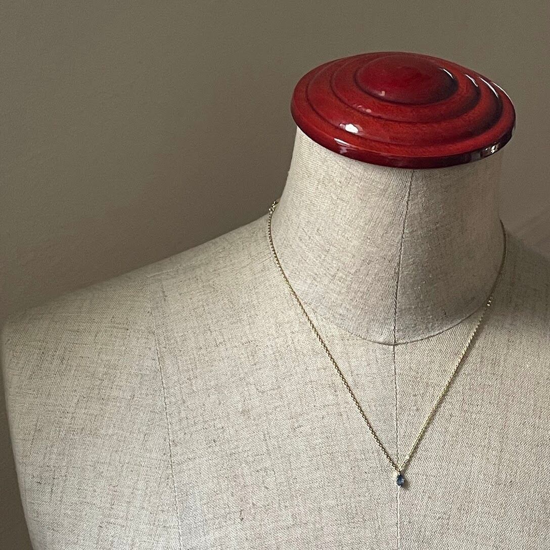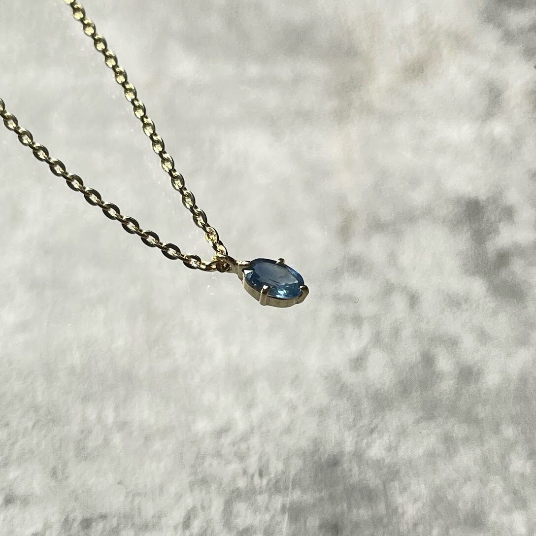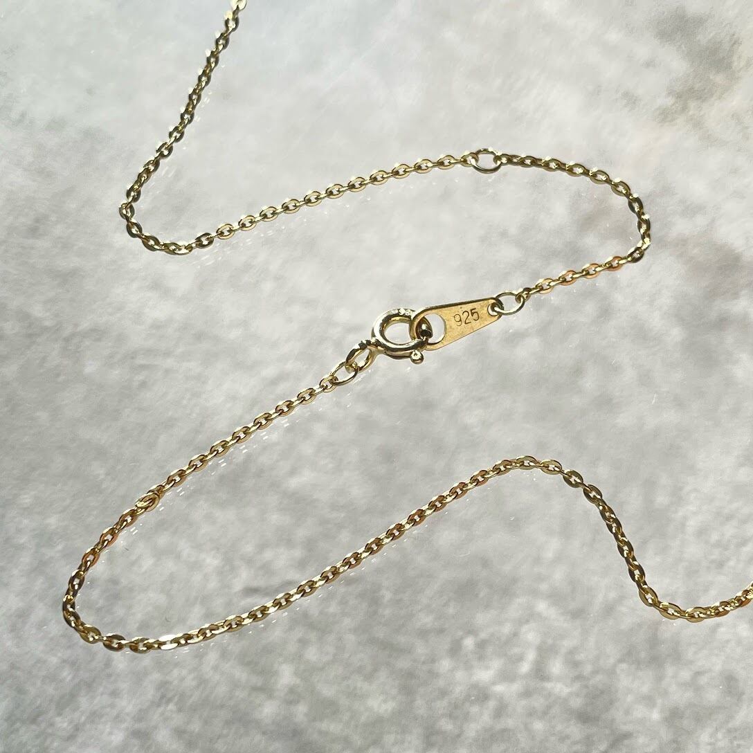 カットが入った小ぶりなサファイアが上品に輝く、シルバー925のゴールドメッキ仕上げのネックレスです。
