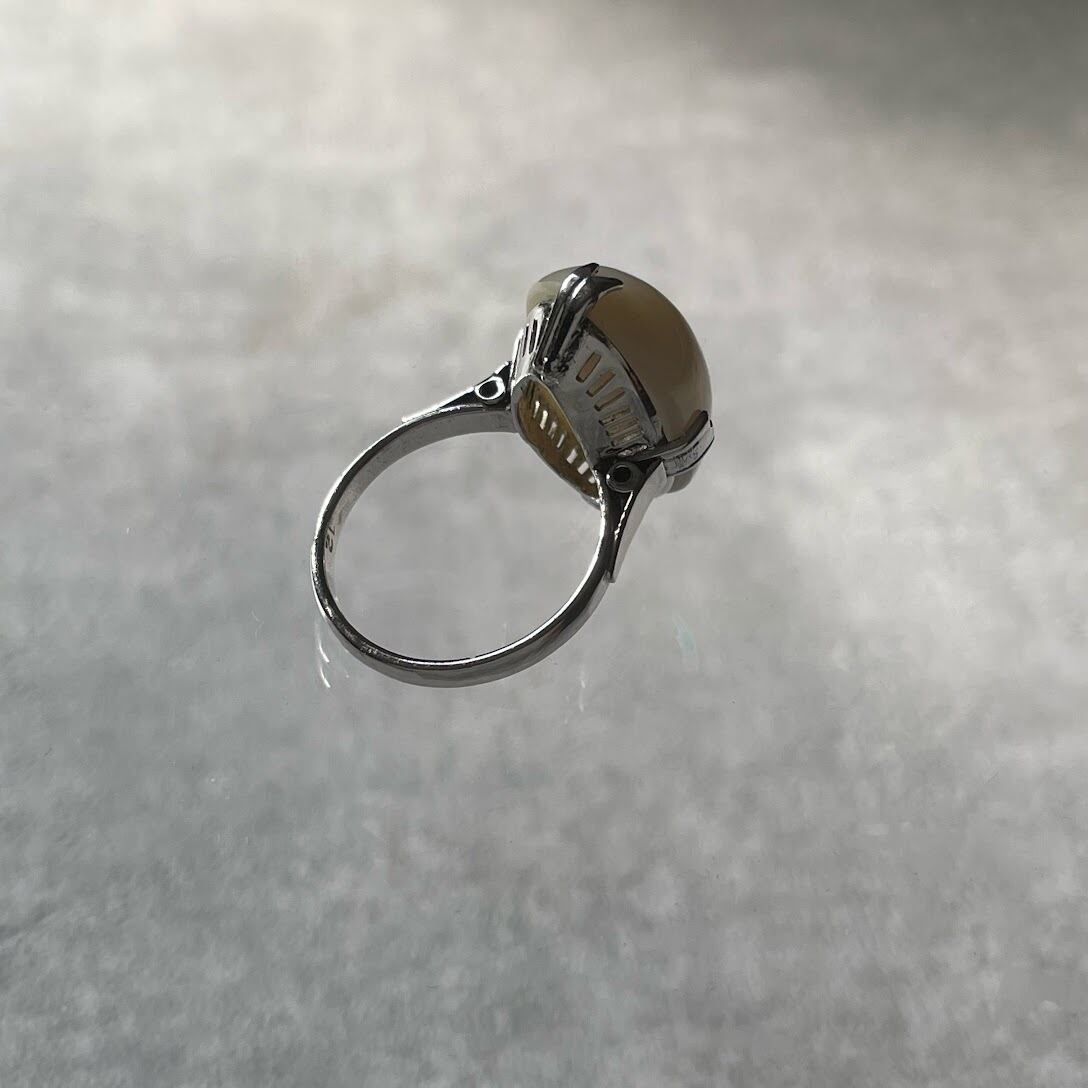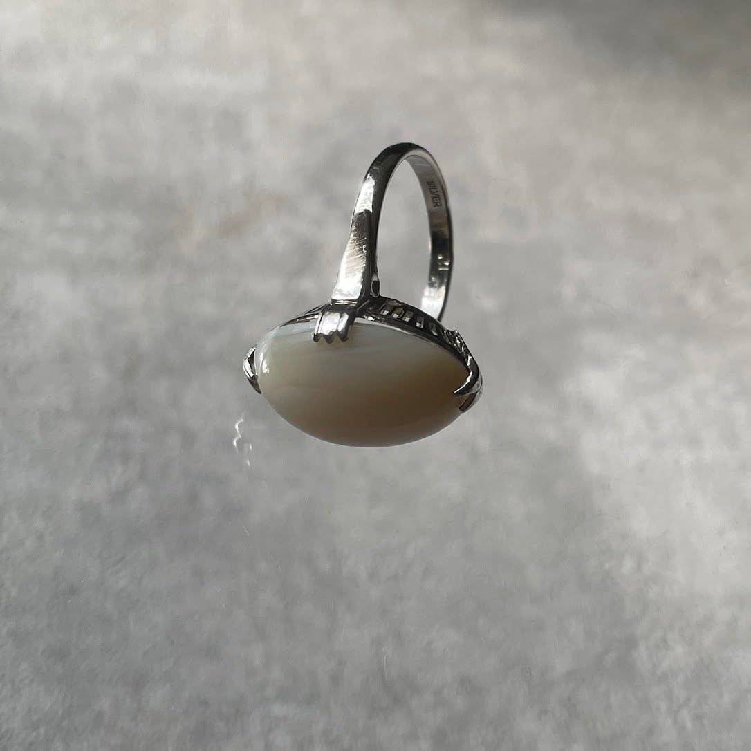 艶感ある石に千本透かしのデザインがヴィンテージ感あるシルバー925のリングです。