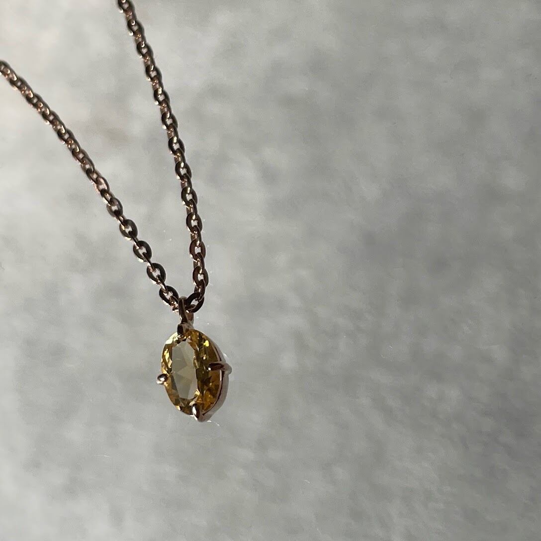 カットが入った小ぶりなシトリンが上品に輝く、シルバー925のピンクゴールドメッキ仕上げのネックレスです。
