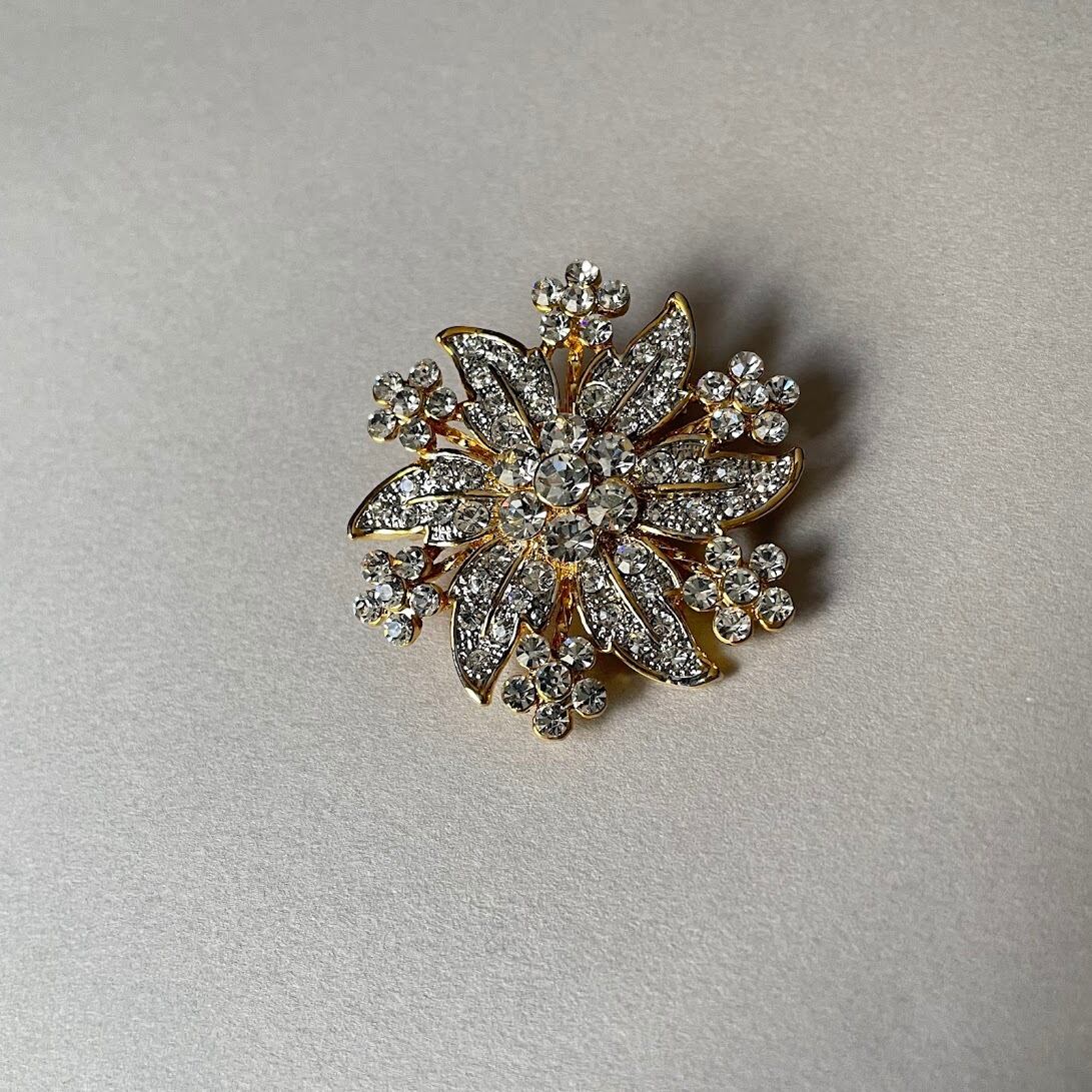 贅沢に使ったガラスの上品な輝きが目を引くブローチです。