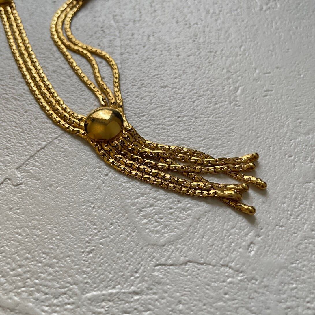 シンプルながらもチェーンタッセルのエンドなど、細かな部分にさりげなくデザインが施されているネックレスです。